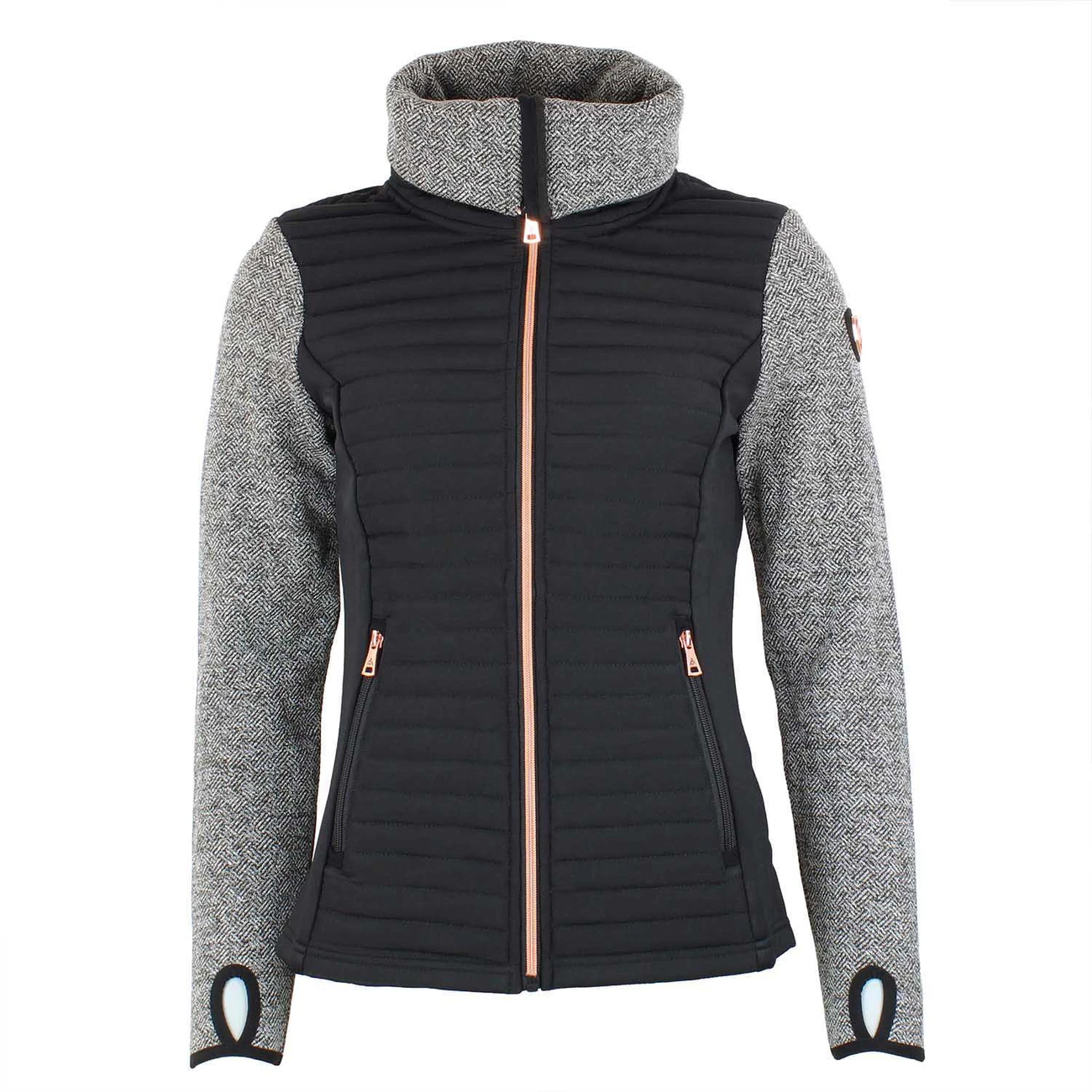 • Blouson polaire zippé tri matière : tissu tissé déperlant, jacquard, tricot