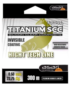Équipement de pêche lignes de pêche asari titanium scc 300 m. La gamme titanium est, depuis des années, une référence de fiabilité auprès des pêcheurs du monde entier. Le nouveau titanium silicon clear composite(scc) est sont évolution naturelle : un monofilament revêtu d’une silicone à très faible indice de réfraction, de sorte qu’il est pratiquement invisible. Conditionnement: boîte en pvc individuelle