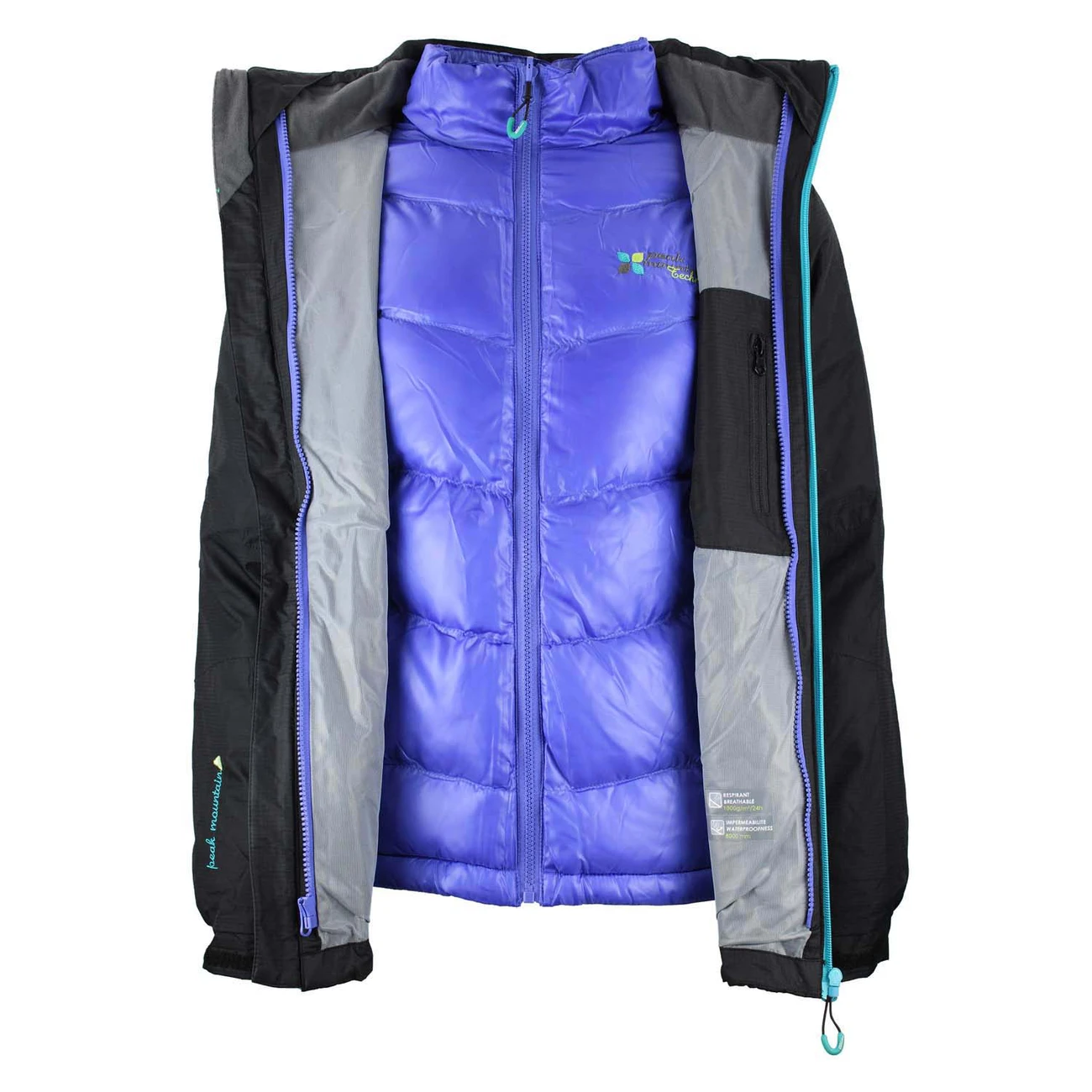 Blouson 3 en 1 Doudoune amovible Coutures thermosoud�es 2 poches lat�rales zipp�es 1 poche poitrine zipp�e Capuche ajustable par cordon et amovible gr�ce � des zips A�ration sous les bras par zips Poignets �lastiqu�s et ajustables par Velcro Bas de veste ajustable par cordon Logos sur la poitrine, la manche Imperm�abilit� : 8 000 mm Respirabilit� : 1 000 g/m2/24h MATI�RES : 100% polyester Doublure : 100% polyester