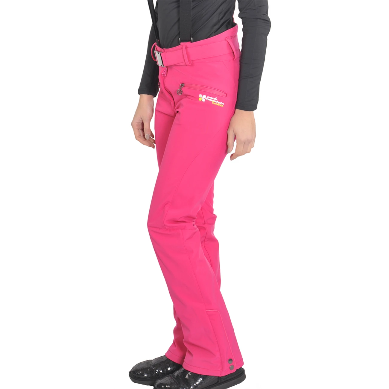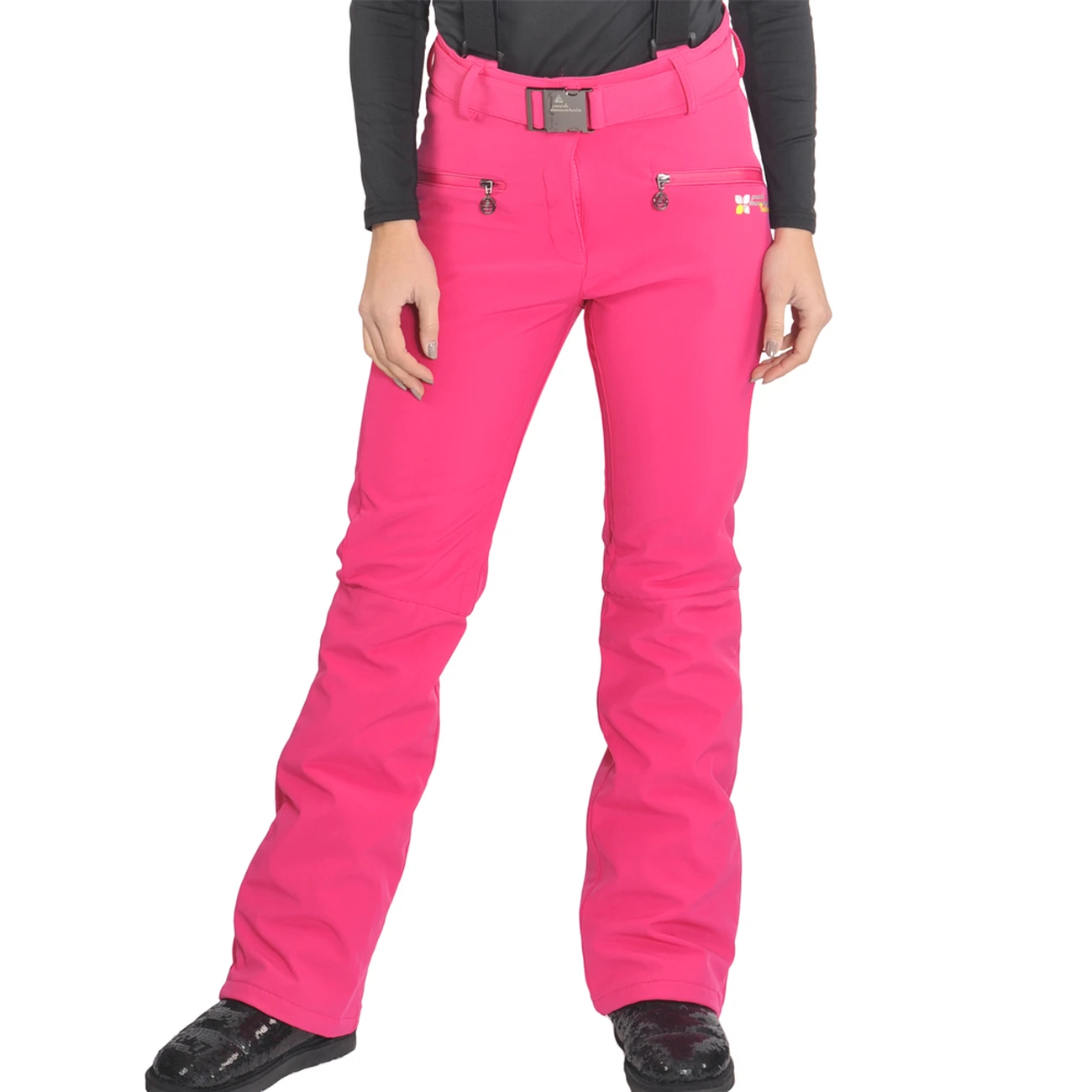 Pantalon de ski Softshell Imperméable et respirant Bretelles réglables et amovibles Ceinture sous passants 2 poches zippées devant Guêtres intégrées Base zippée et boutonnée Fermeture par zip, agrafes et boutons-pression Matière : 84% polyester et 16% élasthanne Matière doublure : 100% polyester.
