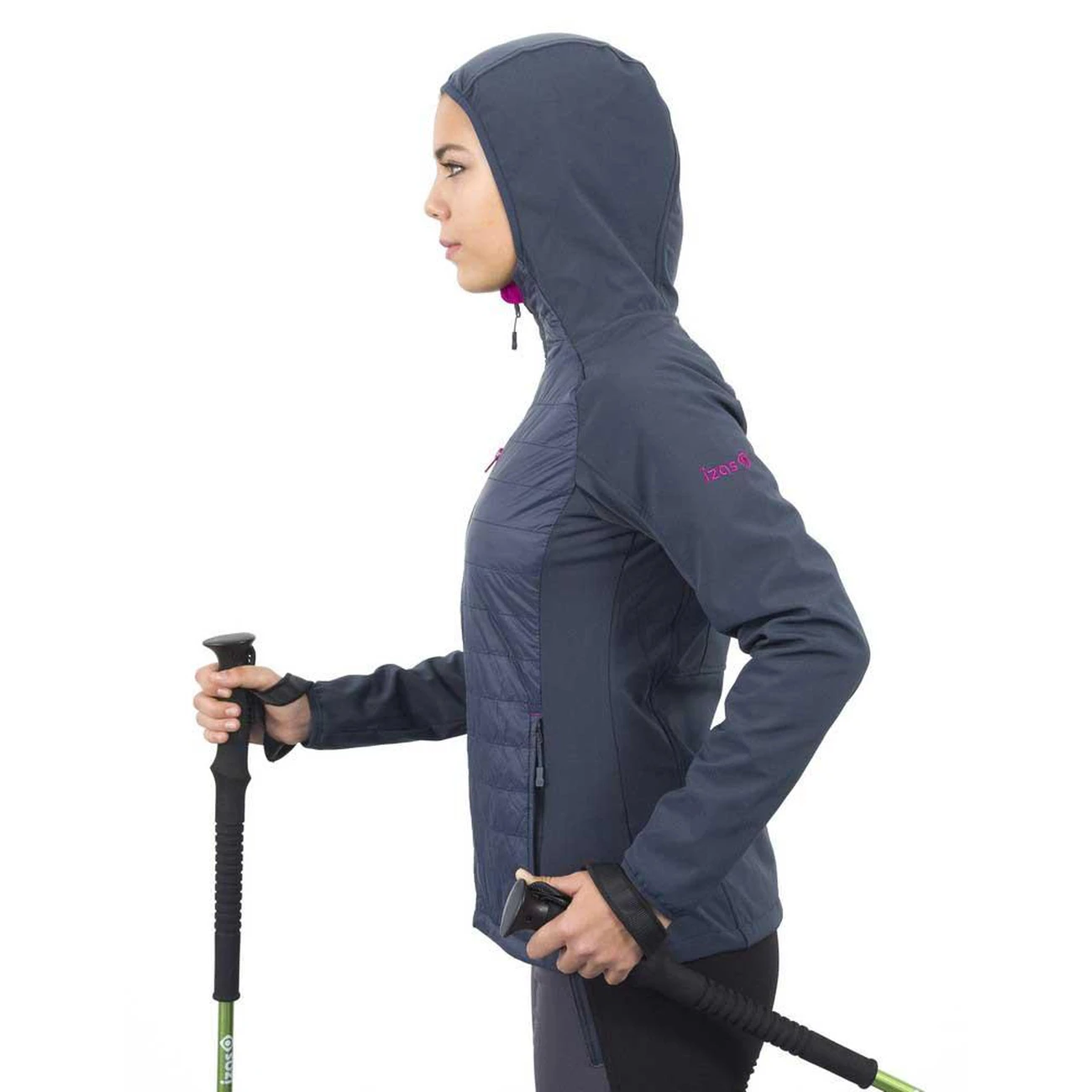 Vêtements femme Vestes soft shell Izas Abieri. Veste dhiver pour les femmes de la montagne Abieri. Cest une veste mélangée de tissu Softshell et de fibres pour lhiver. Les manches sont en tissu Softshell et résistant au vent avant et à leau. Vêtements de montagne pour les activités sportives, en particulier en hiver et avec un style très urbain.Caracteristiques:- Vêtements de montagne avec tissu Softshell- Veste dhiver féminine légère et respirante- Hotte fixe- Dos et manches avec tissu résistant au vent et à leau, rembourrage Mount-Loft- Avant de la gaine en fibre- Poches latérales et fermeture à glissière à poitrine- Poignets élastiques avec fermoir au pouceSpecifications:- Composition: 96% polyester, 4% élasthanne, 400g / m2 + 20D 100% Nylon- Système de protection contre les intempéries (A.W.P.S)