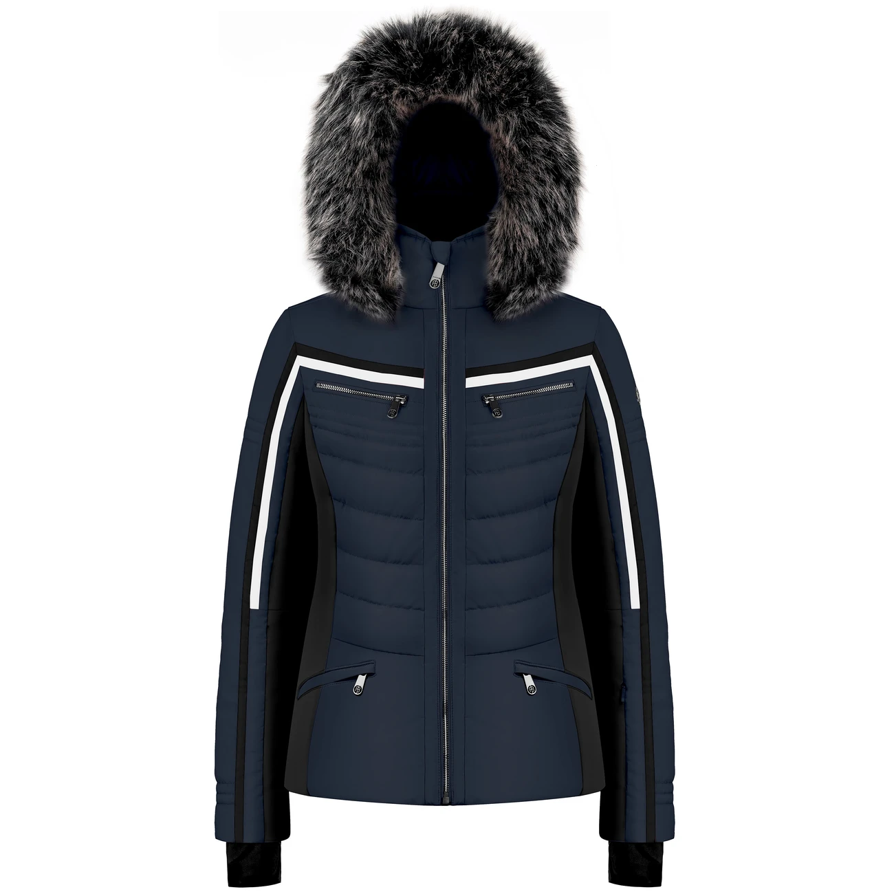 Ce modèle est doté d’une capuche amovible dont la bordure en fausse fourrure est détachable.