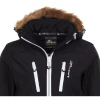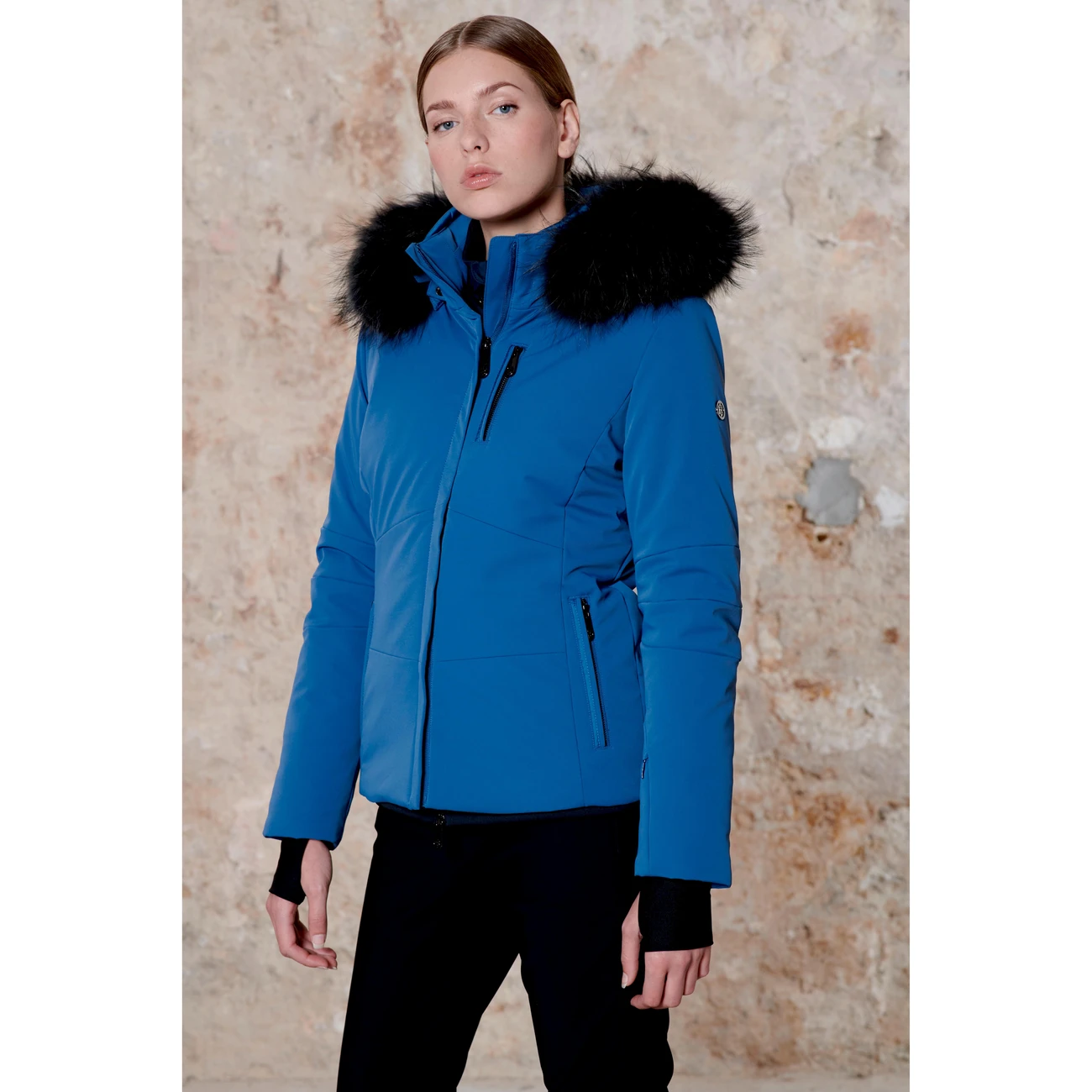 En plus de sa capuche amovible en fourrure de raton laveur, elle bénéficie de tous les éléments fonctionnels exigés par la pratique du ski.